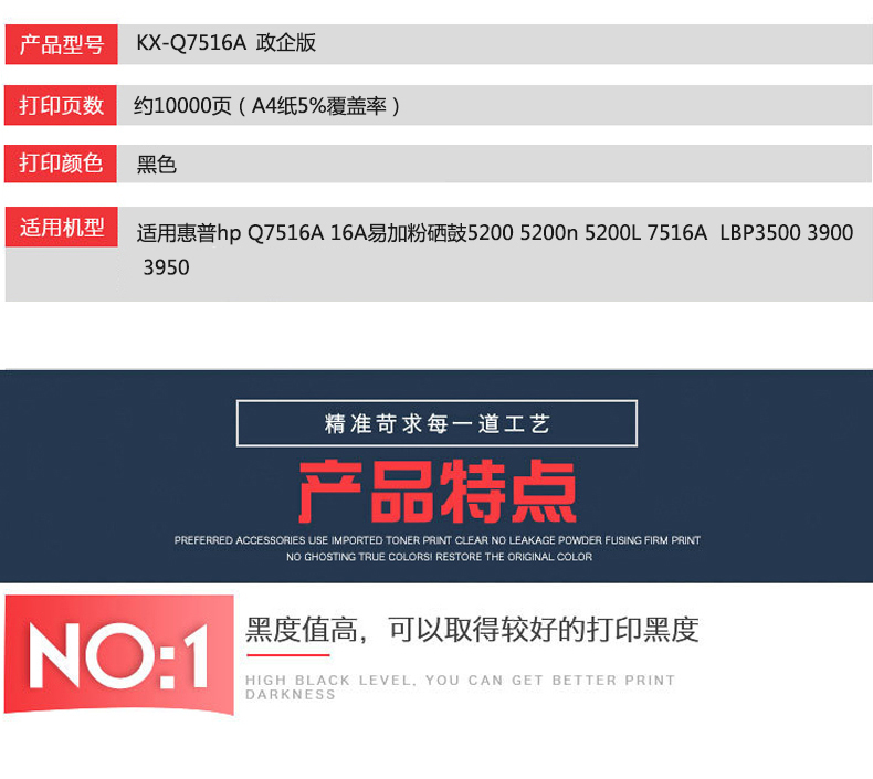 凱欣政企版 KX-Q7516A適用惠普 hp Q7516A易加粉硒鼓5200 5200n 5200L 7516A 佳能LBP3500 3900 全國統(tǒng)一價:236元